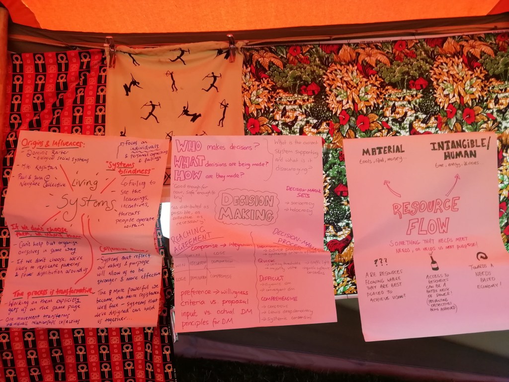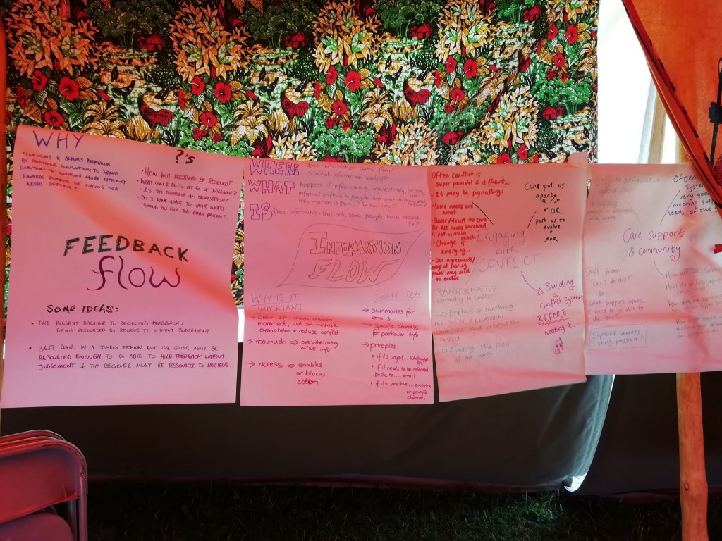 We then discussed these further in smaller groups focuses around particular systems from: decision making, information flow, resource flow, conflict engagement, care, support & connection, and feedback. The workshop included a wide range of participating with varying levels of involvement in the agroecology movement who all brought experiences from different contexts. It was an initial conversation in ongoing work to develop spaces for strategic movement thinking.